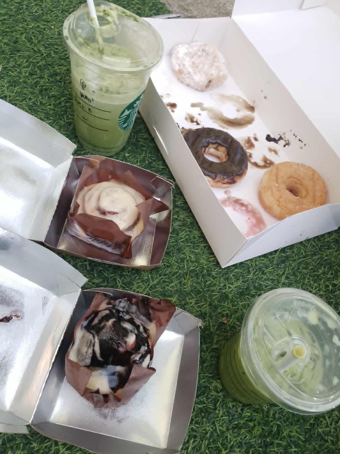 After that, we bought cinnamon, chocolate, and cheese-flavored pastries. Then we noticed that there were a lot of people at Dunkin’ Donuts—it turned out they were having a promo, so we ended up buying some too. After buying everything, we went to our usual spot in SM to eat and hang out.